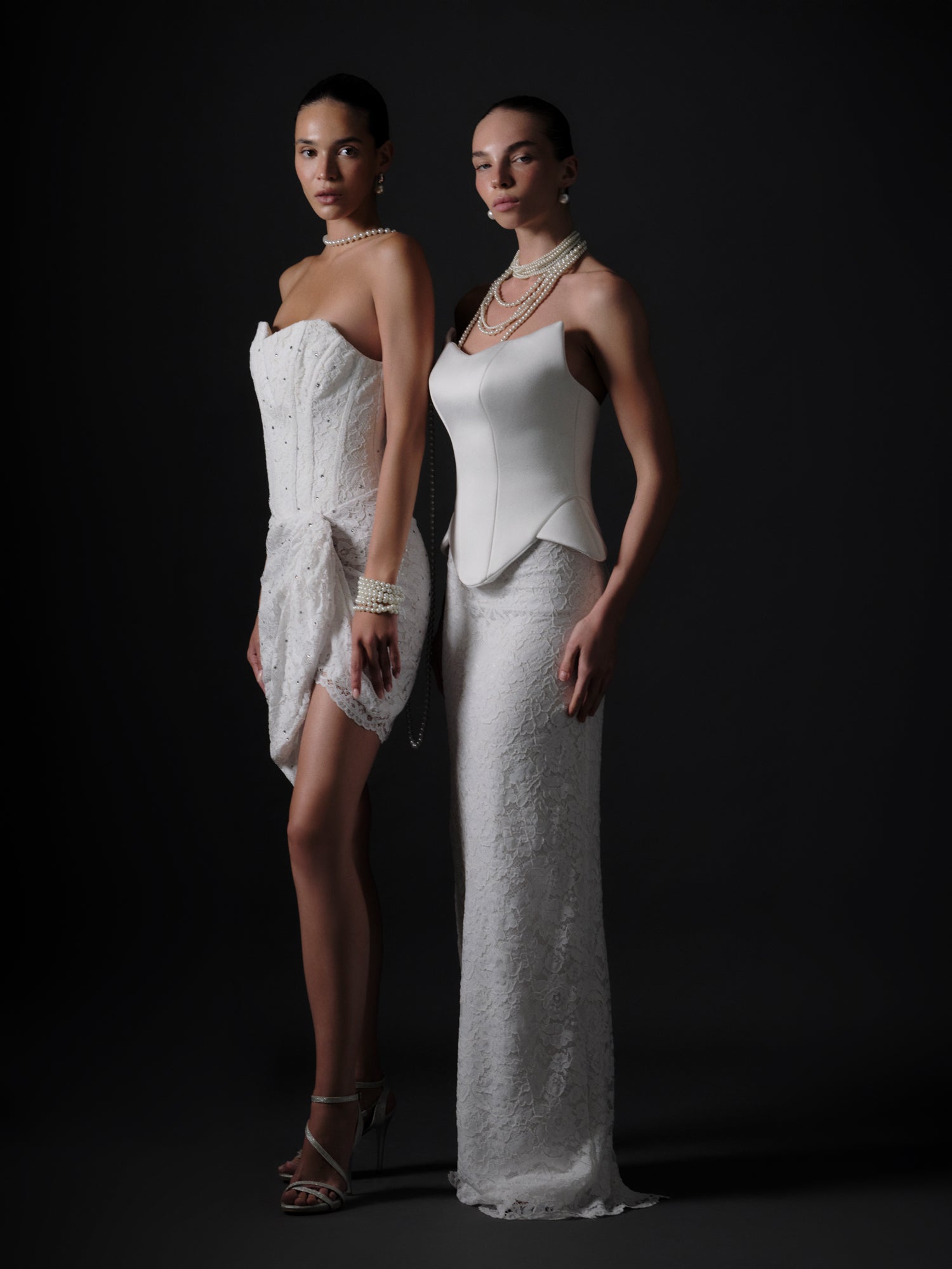 With its corseted bodice and lace skirt, the Alliance Noble Dress brings together the nobility and strength of bridal couture.