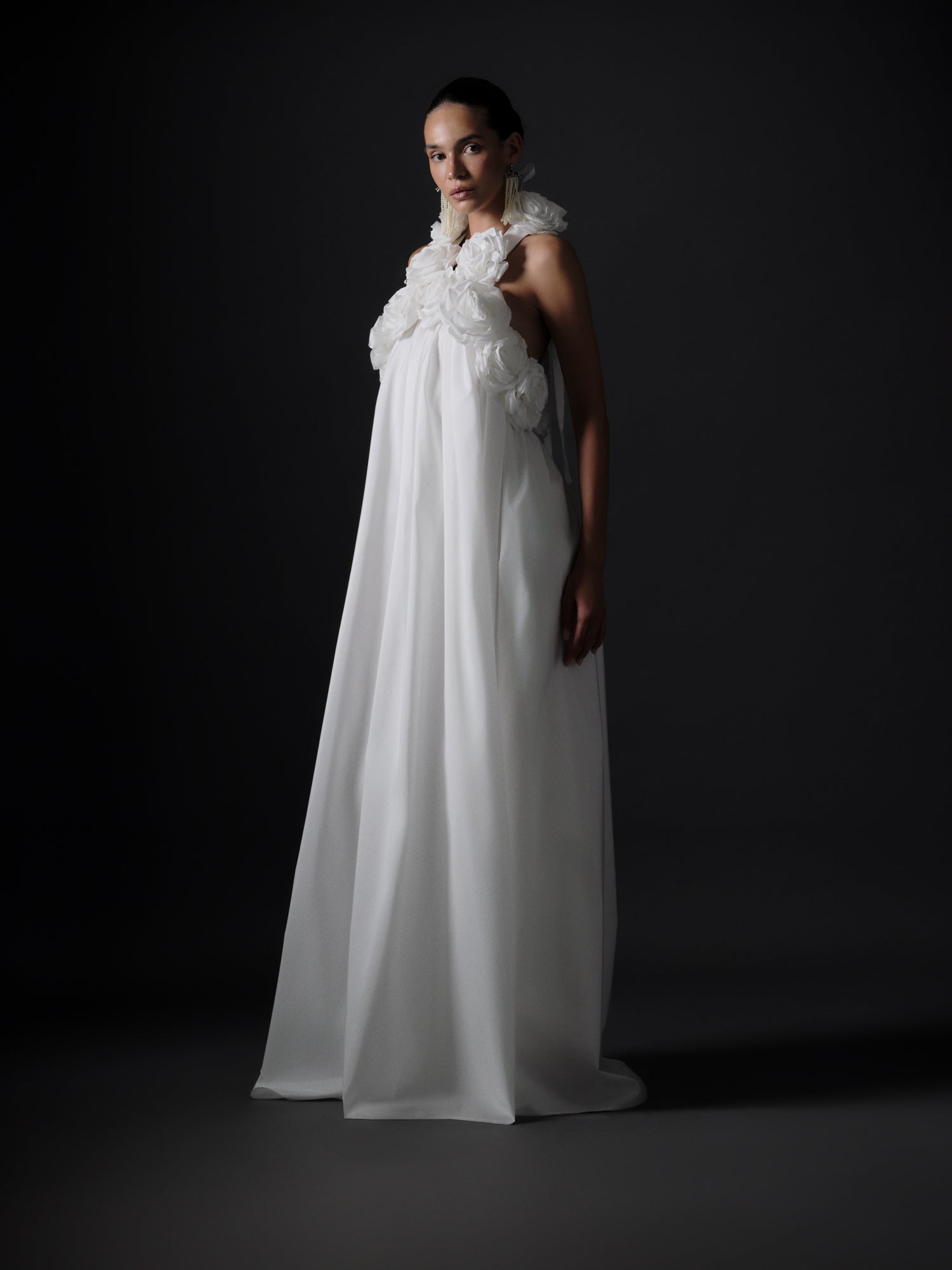 As the signature design of the collection, the Calice Cérémonial Dress embodies the ritual theme at a couture level through its dramatic floral detailing at the neckline.