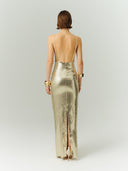 A stretch sequin fabric dress designed to hug your curves, with a centre back slit for added allure.