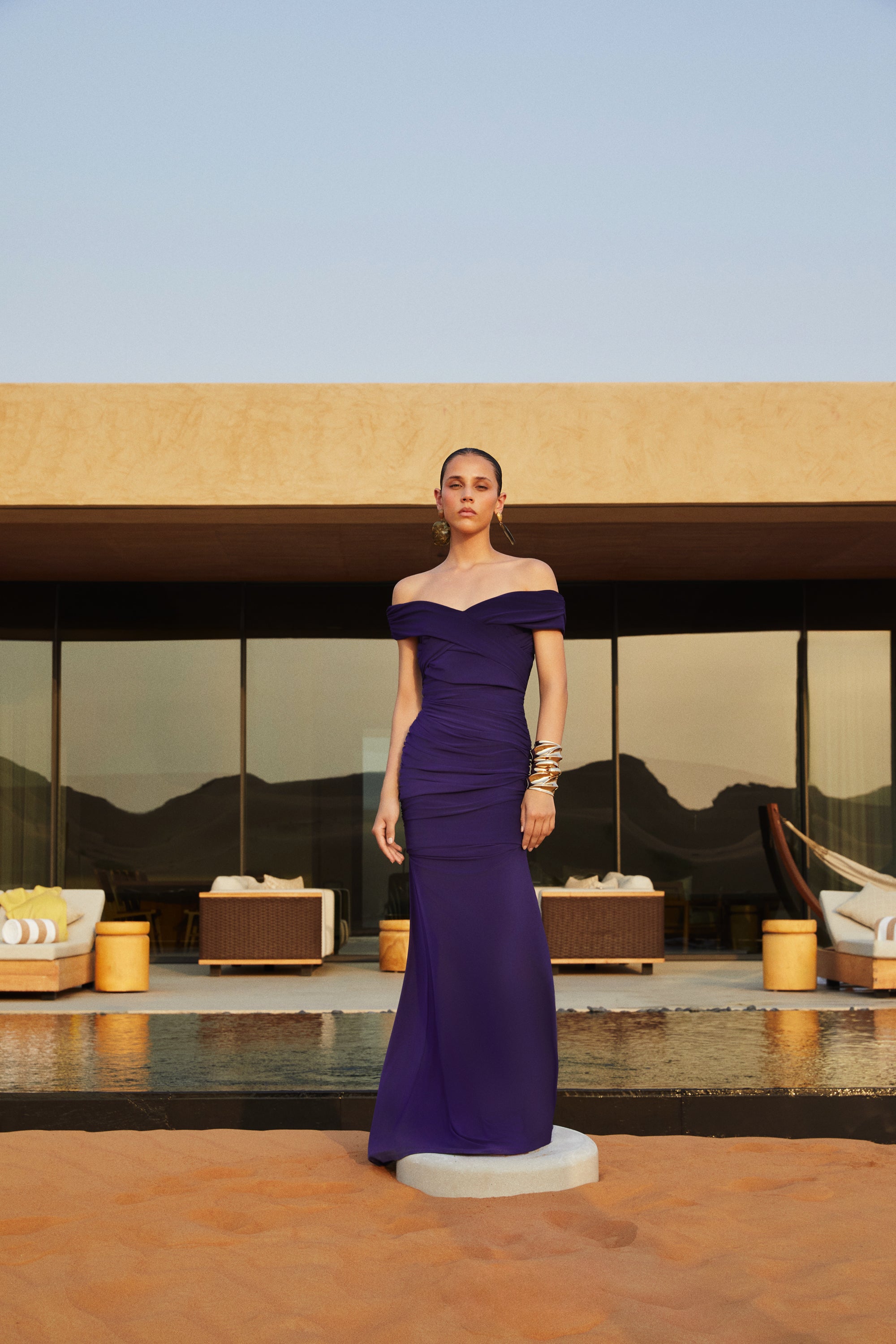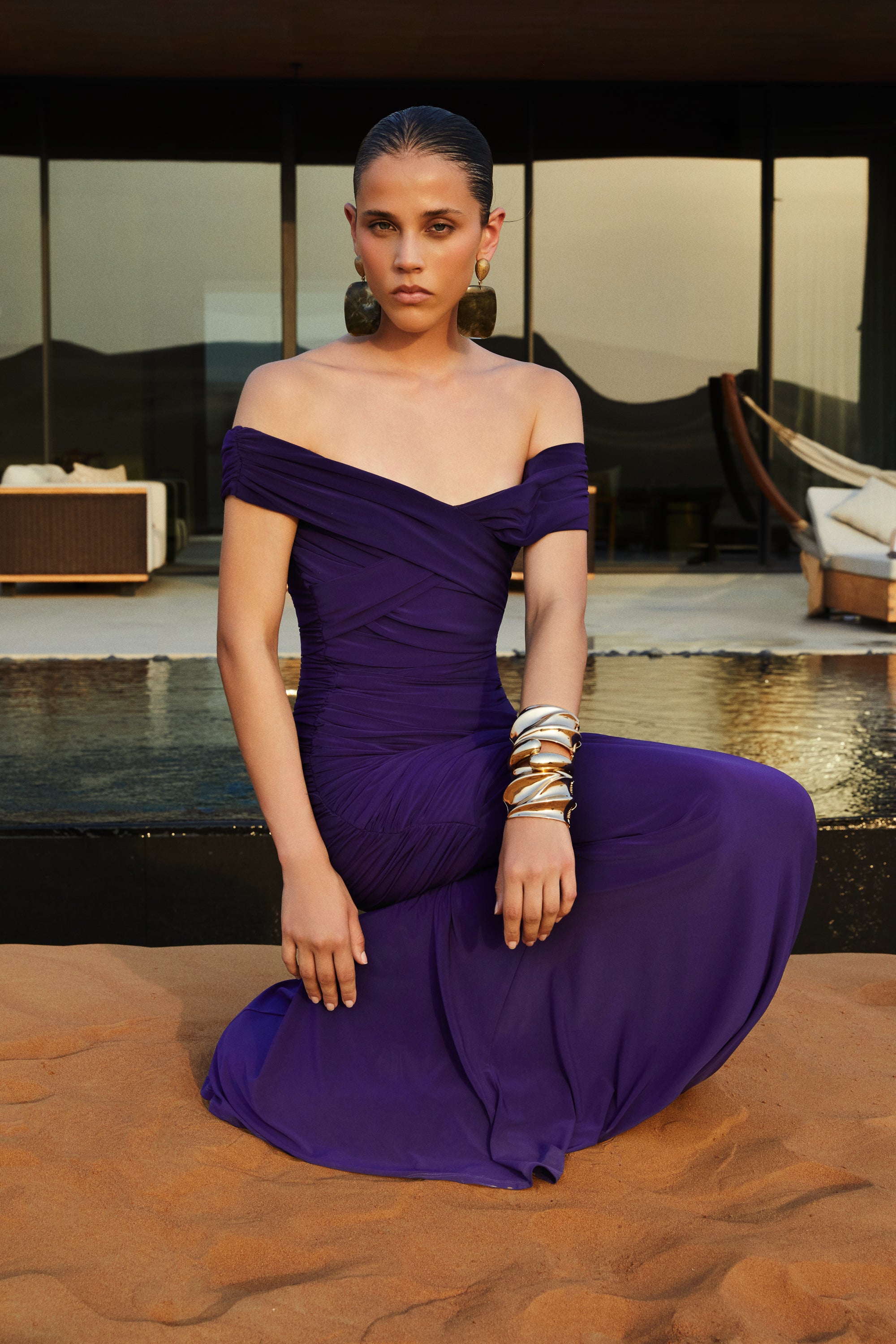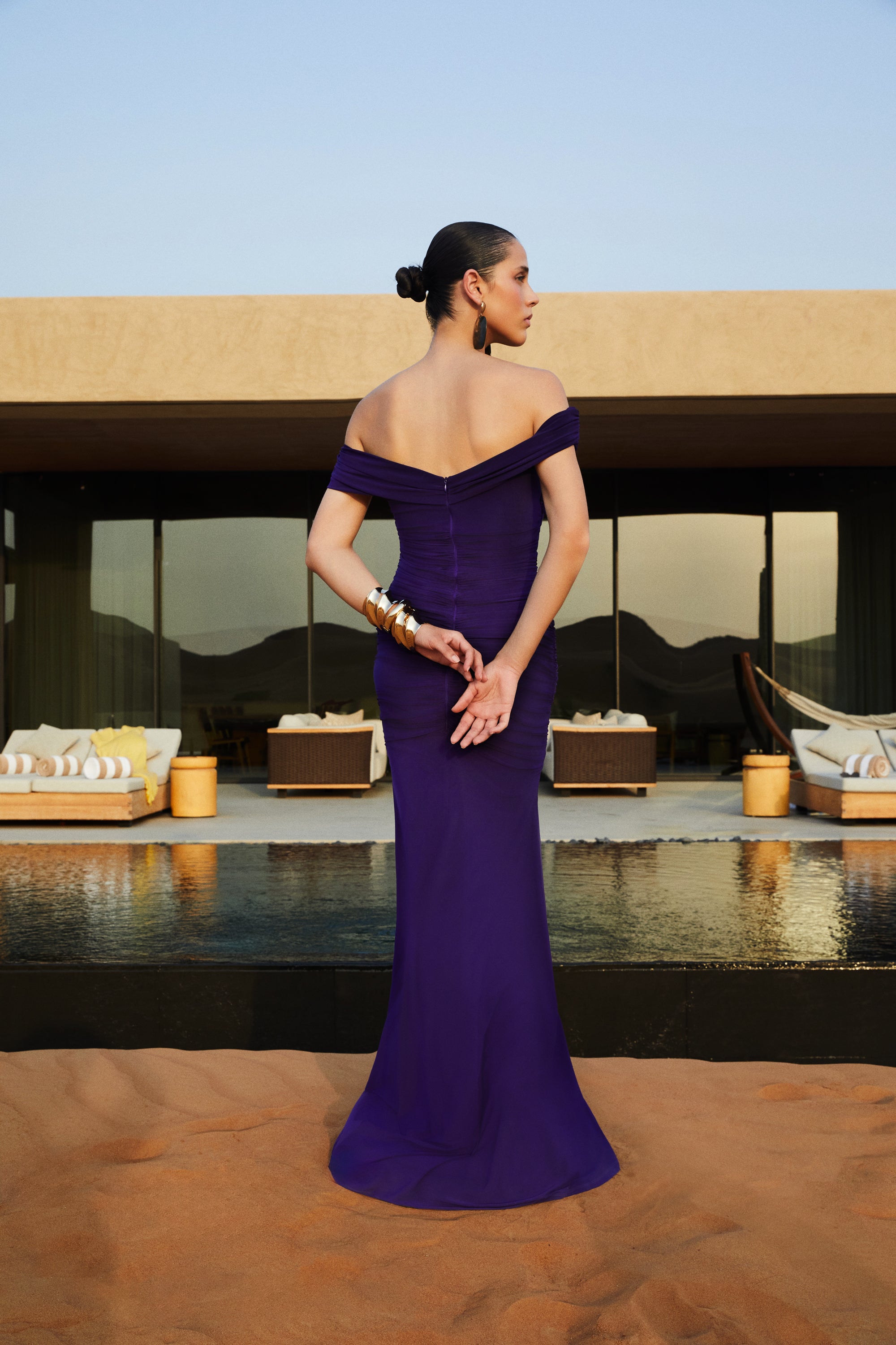 Matilda is the embodiment of refined drama. Designed in a rich burgundy hue, this off-shoulder dress features a draped bodice with crisscross detailing that accentuates your figure beautifully. The long skirt flows elegantly with every step, exuding a regal charm. Perfect for winter events, formal gatherings, or a special night out, Matilda offers a sophisticated and striking look for those who dare to stand out.