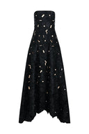 Romantic and refined, this strapless lace dress features delicate embroidery and a soft beige lining for subtle contrast.