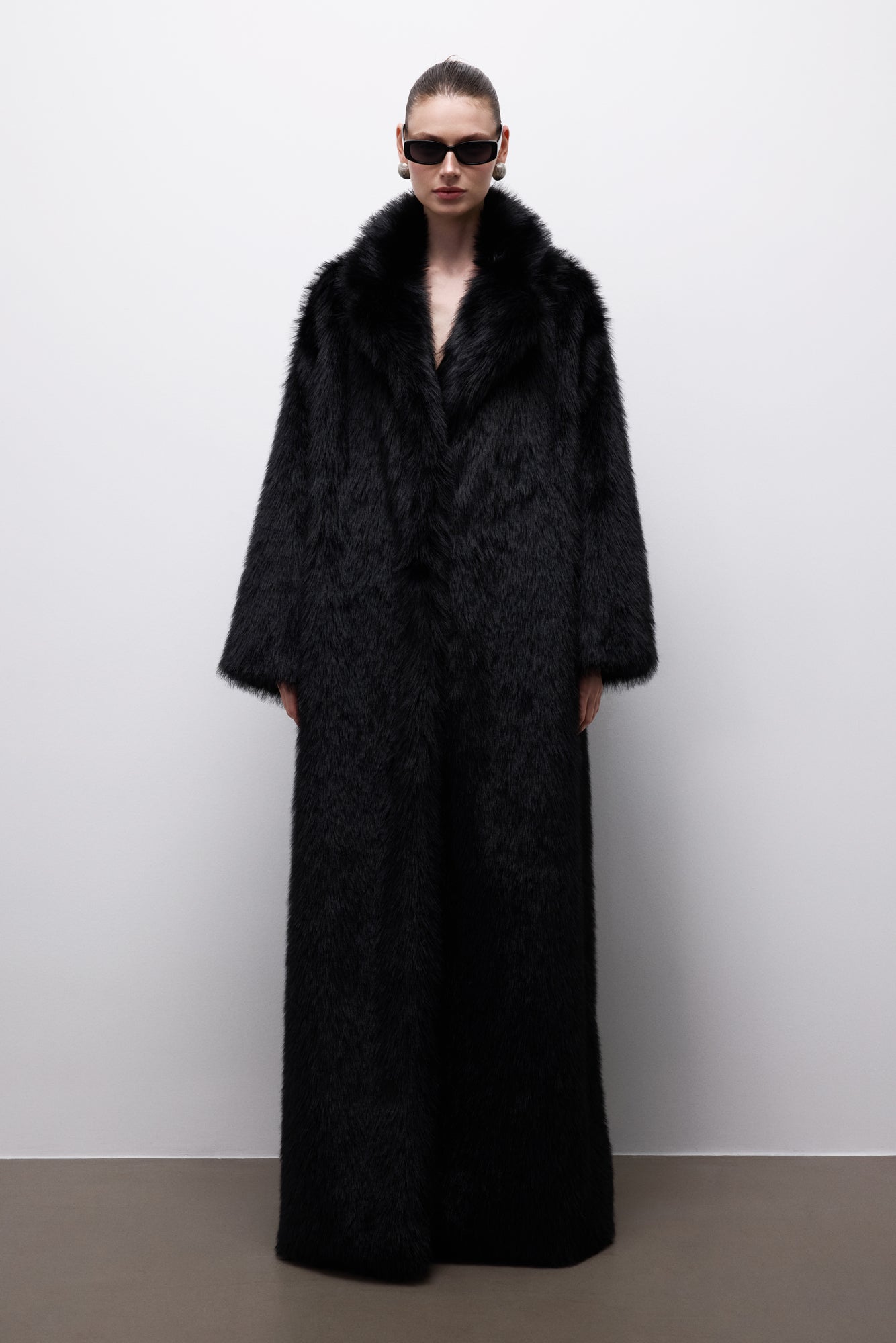 This long fur coat, where elegance is transformed into absolute power, represents a refined vision of luxury. Its fluid silhouette, voluminous collar, and balanced form create an impactful presence without excess. Quiet, timeless, and impeccable… Designed for those who know that true luxury is found in subtlety.